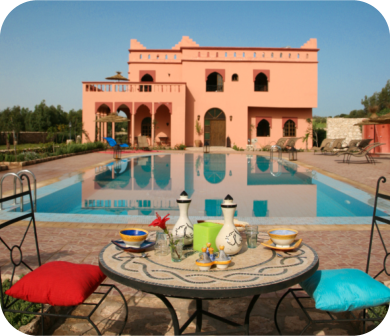 A 8 kms d'Essaouira, à proximité du Golf, la maison d'hôtes Riad les 2 Mondes est constituée de deux grands riads entourant une piscine à débordement.